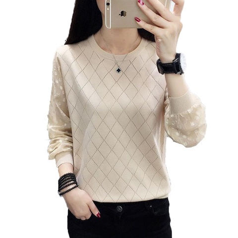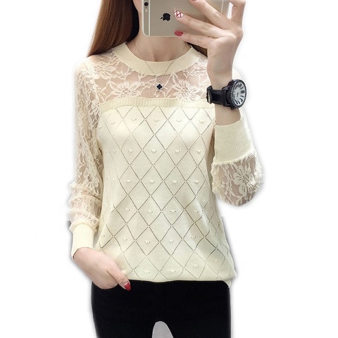 Hochwertiger modischer dünner O-Neck Lace Lady Strick pullover