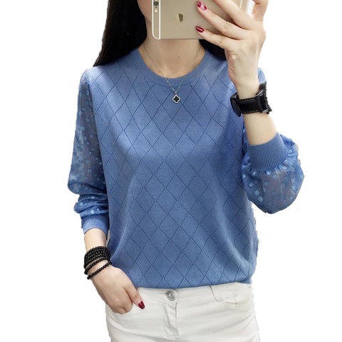 De alta qualidade da moda fina o-pescoço rendas senhora knit top sweater